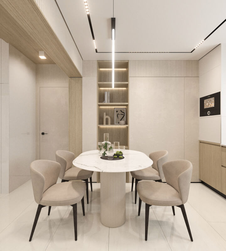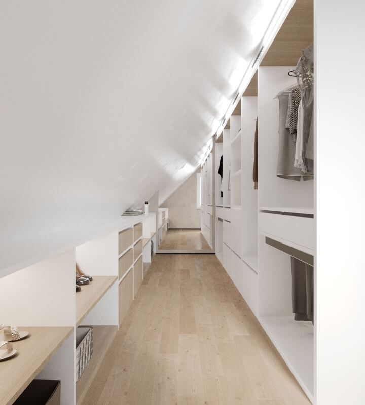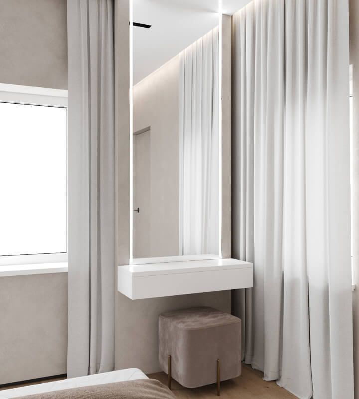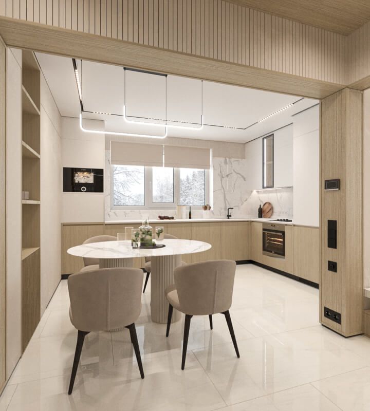 Проект был разработан для молодой семьи. Задача не из простых — адаптировать современный и минималистичный интерьер под существующий контруктив двухэтажного дома.